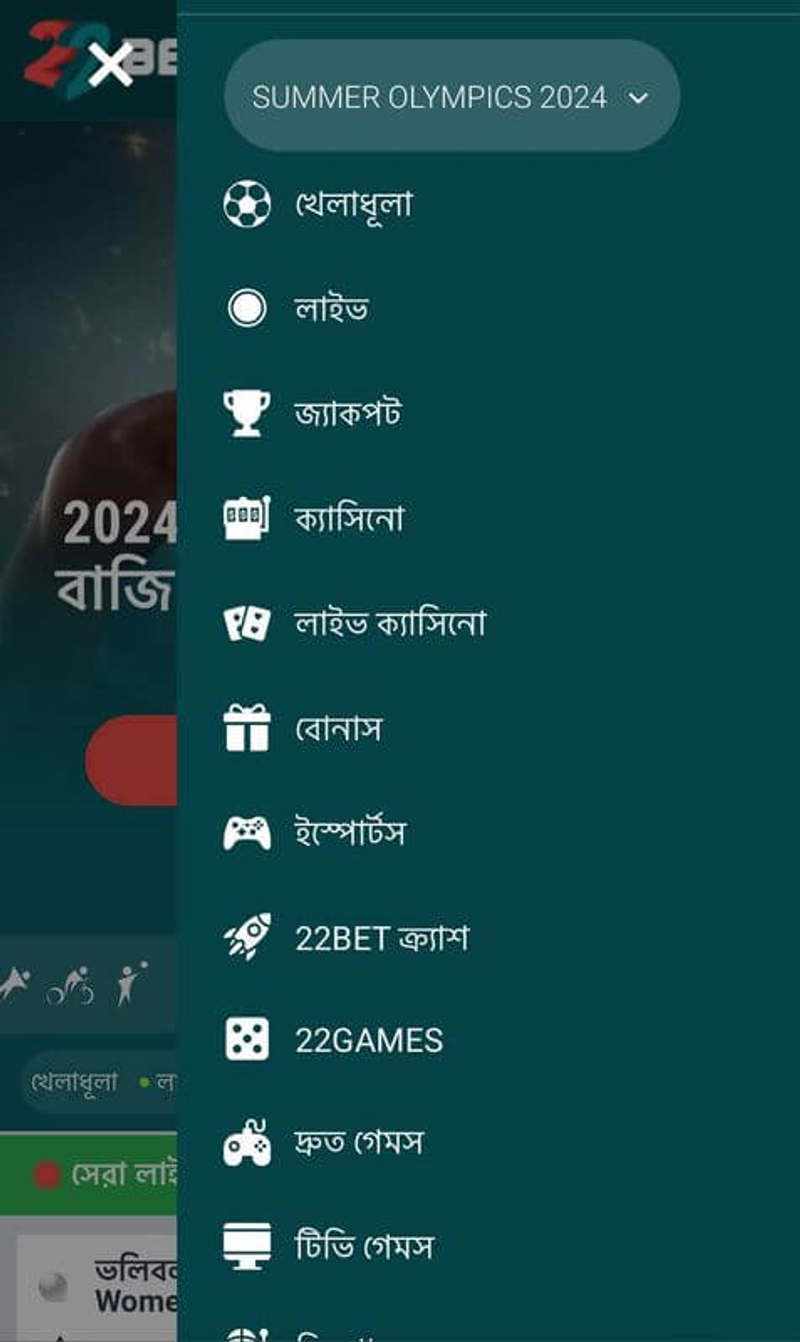 22Bet ওয়েবসাইটের মোবাইল সংস্করণ